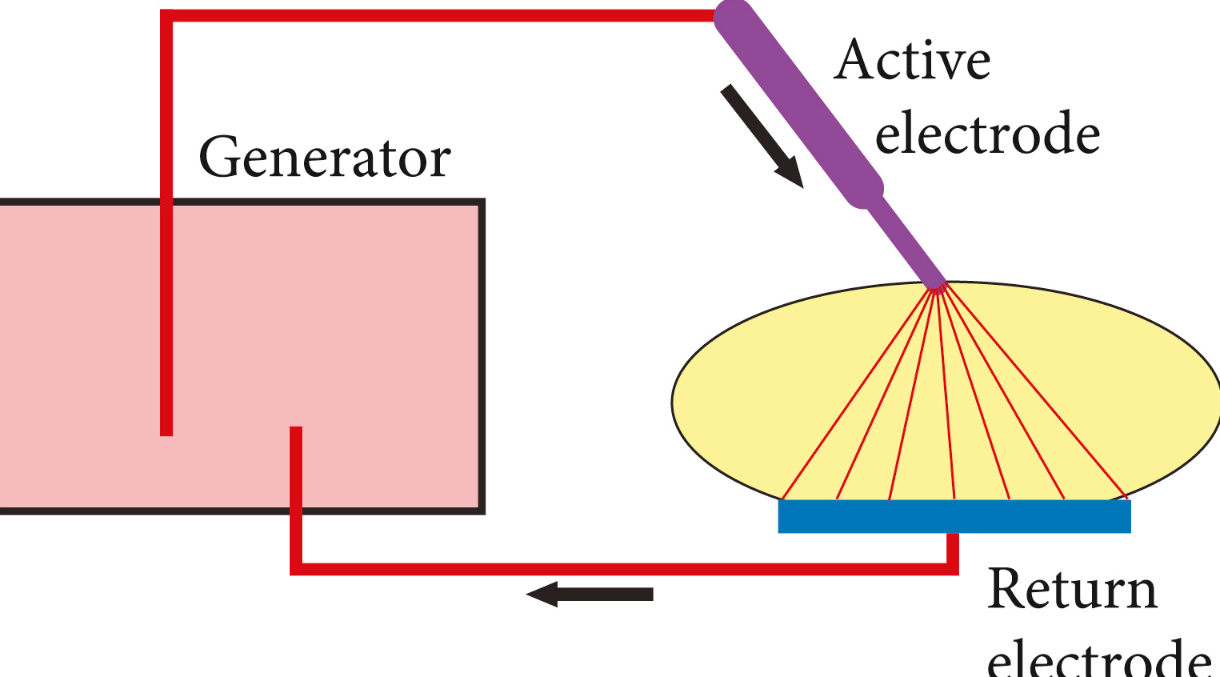 注意:所有電外科手術(shù)都是“雙極的”,因為電流從一個(gè)極或電極流向另一個(gè)電極。
